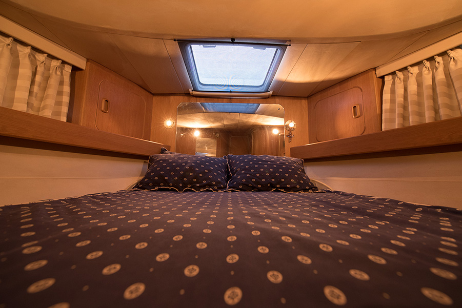 For overnight stays, the boat can host 6 guests in 3 cabins, 1 double cabin with en-suite facilities, another double cabin and a cabin with a bunk bed. The boat is equipped with A/C system. The skipper will sleep in a separate cabin. In the front deck, you will find space for sunbathing!