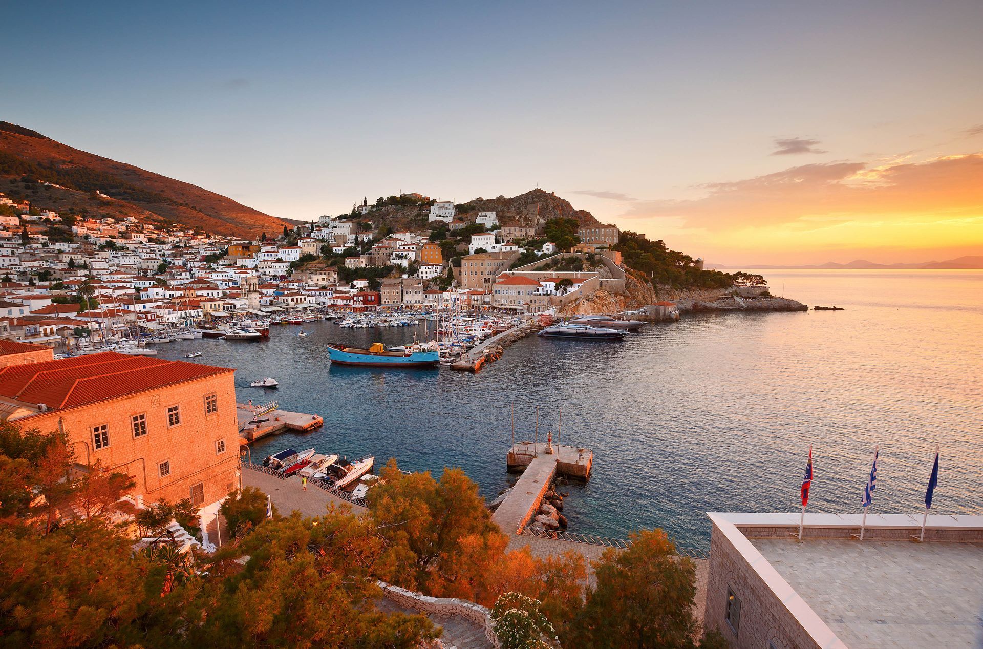 Hydra is a popular sailing destination with interesting architecture, including luxury residences built by Italian craftsmen. The grand houses of local fighters for Greek independence are now museums. The island has around 300 churches and 6 monasteries for those interested in religious monuments. Walking in the car-free island is a pleasure, and visitors can enjoy strolling in the picturesque town and harbor, taking trips in the countryside, swimming in the blue waters, and savoring local dishes. The view of the Aegean Sea from the island is breathtaking.